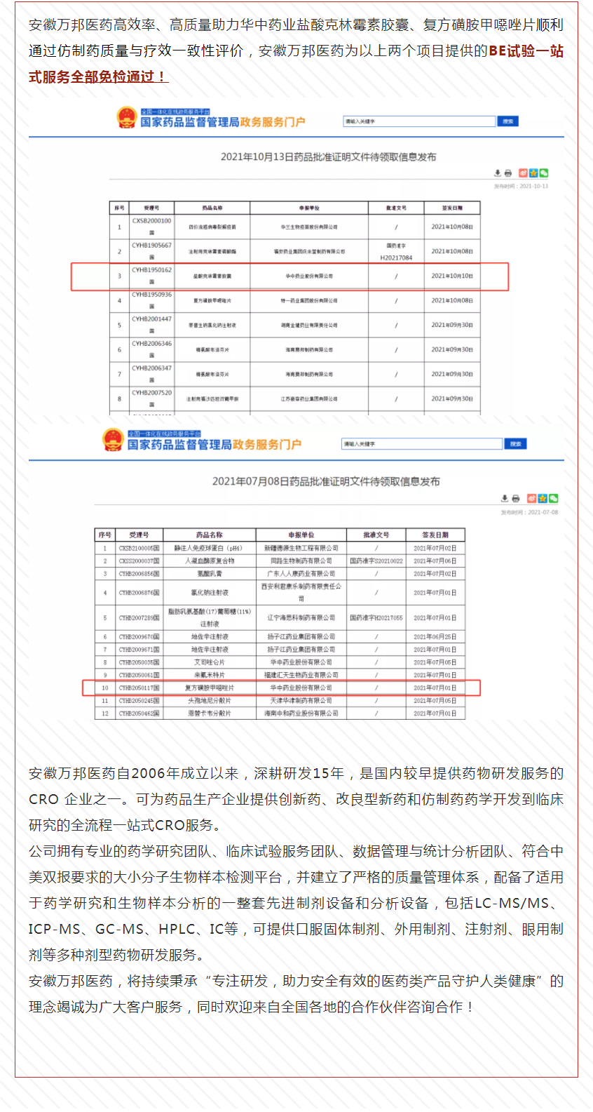 喜報|安徽萬邦醫藥助力鹽酸克林霉素膠囊、復方磺胺甲噁唑片順利通過一致性評價