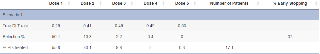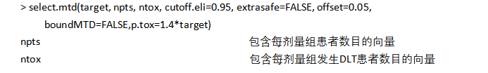 (3)最(zui)后則是設置毒(du)性(xing)(xing)劑量剔除標準,即Pr>Pe(真毒(du)性(xing)(xing)概率>目標毒(du)性(xing)(xing)概率的(de)(de)概率>Pe),一般我(wo)們把Pe設置為0.95。對(dui)于(yu)低(di)劑量組(zu)的(de)(de)毒(du)性(xing)(xing)被認(ren)為是顯著的(de)(de)藥物來說,可(ke)以選擇(ze)使用更加嚴格的(de)(de)剔除標準,避(bi)免(mian)首個劑量組(zu)已經超過MTD。另一方(fang)面,我(wo)們也(ye)可(ke)以選擇(ze)確保MTD下的(de)(de)DLT概率小(xiao)于(yu)我(wo)們的(de)(de)劑量降(jiang)低(di)界值,這一選項會提(ti)高(gao)試驗(yan)的(de)(de)安全性(xing)(xing),但(dan)是可(ke)能會稍微降(jiang)低(di)MTD的(de)(de)選擇(ze)比例(selection percentage)。
