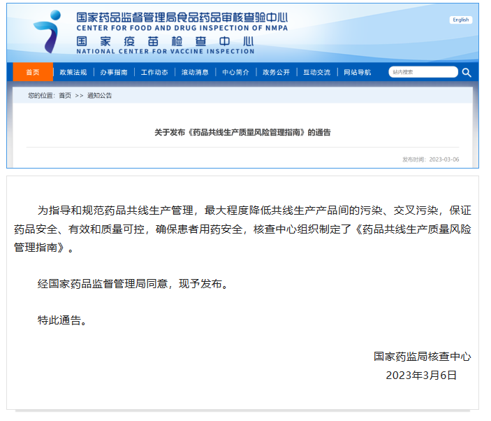 法律法規 | CFDI正式發布《藥品共線生產質量風險管理指南》