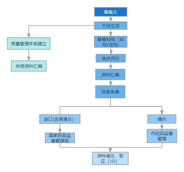 醫療器械注冊過程,涉及流程較多。小編整理了一份注冊流程圖包含:一類備案、二/三類注冊、變更及創新審批等內容。內含最新的全國收費標準、部分法規清單及監管結構,以便于大家更快的了解醫療器械注冊流程。