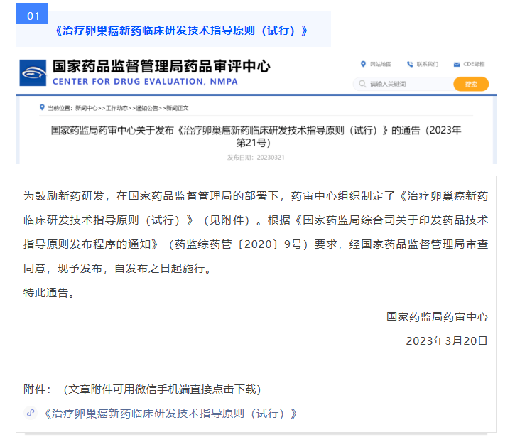 法律法規|CDE連發三條指導原則,卵巢癌新藥臨床研發、化學藥品說明書及標簽、化藥