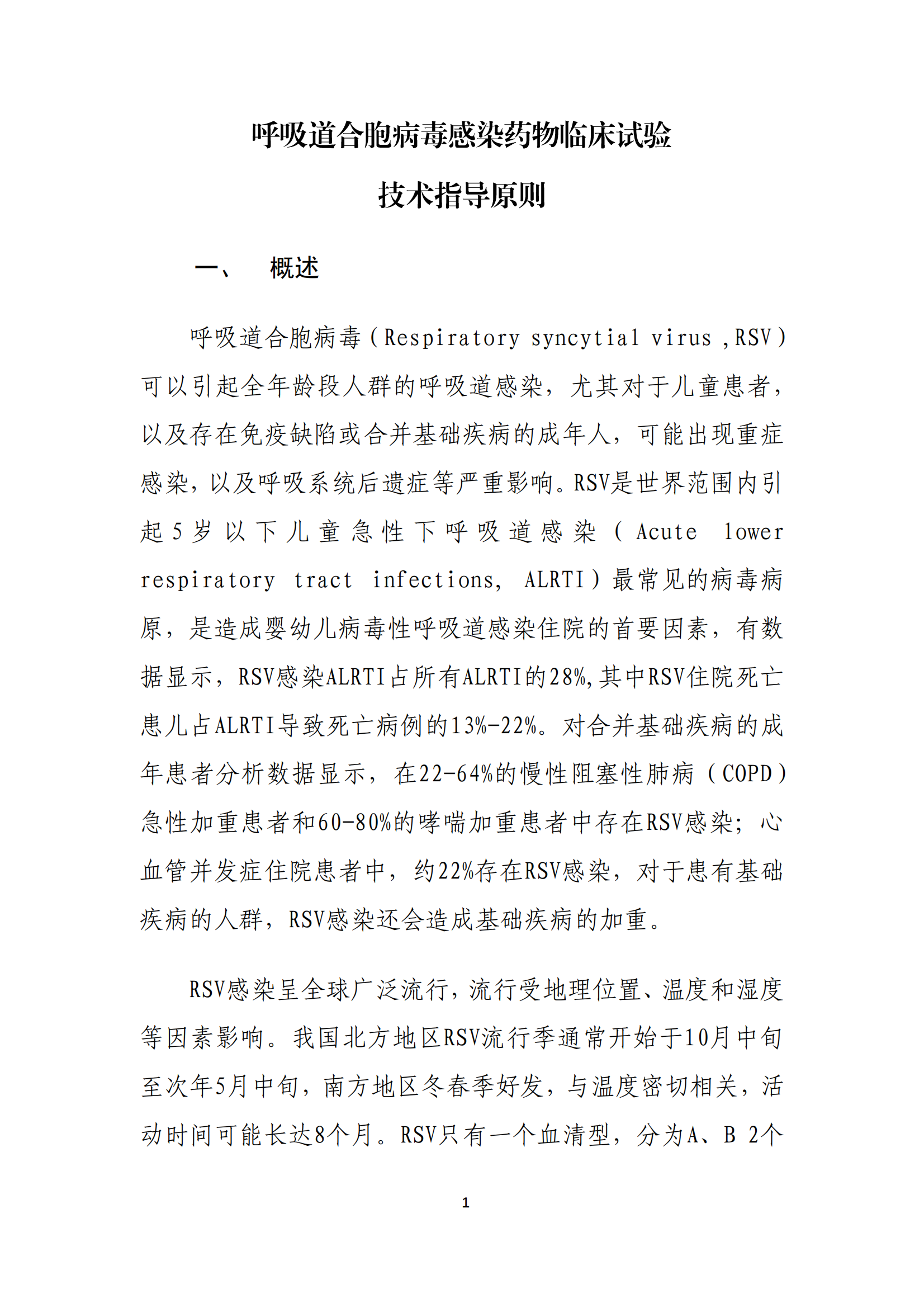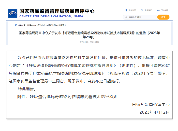 法律法規|CDE關于發布《呼吸道合胞病毒感染藥物臨床試驗技術指導原則》的通告