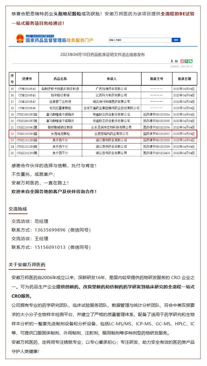 喜報|安徽萬邦醫藥助力合肥恩瑞特藥業頭孢地尼顆粒成功獲批!