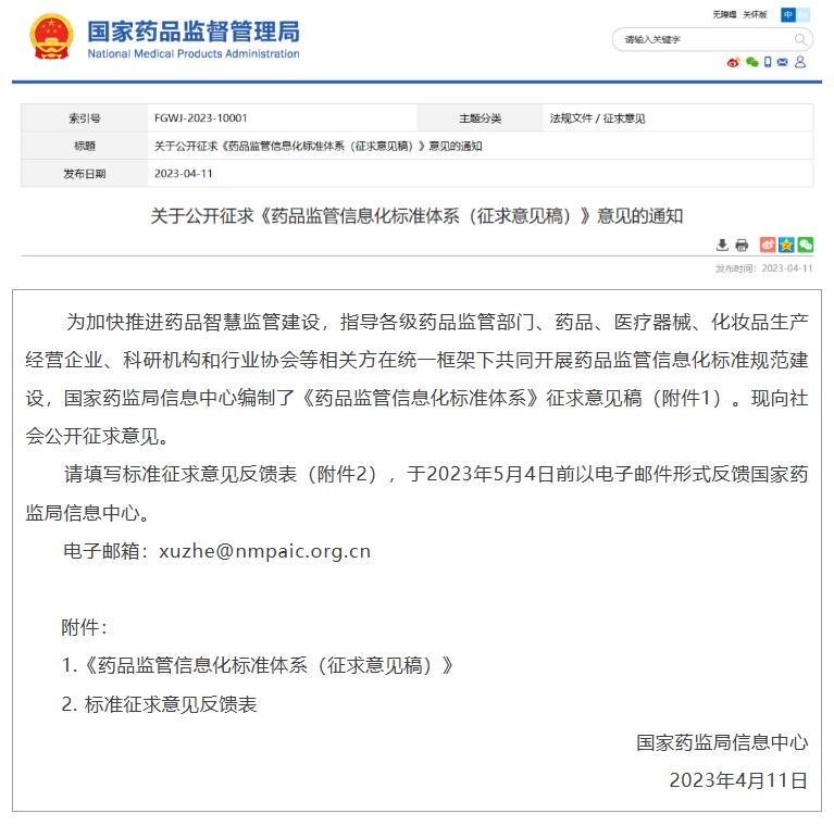 法律法規|NMPA發布《藥品監管信息化標準體系(征求意見稿)》