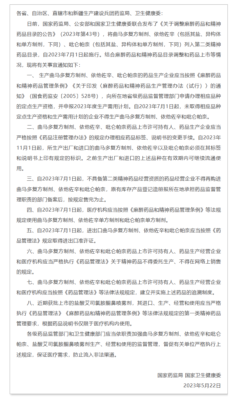 法律法規|國家藥監局 國家衛生健康委關于加強曲馬多復方制劑等藥品管理的通知