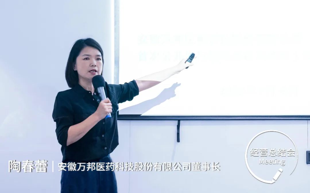 2023年(nian)8月18日,安徽(hui)萬邦醫藥40多(duo)位中高層管(guan)理干(gan)部(bu)參加上半年(nian)的(de)經營總結會,安徽(hui)萬邦醫(yi)藥董事長(chang)陶春蕾女士全(quan)程主持會(hui)議并作分(fen)享。