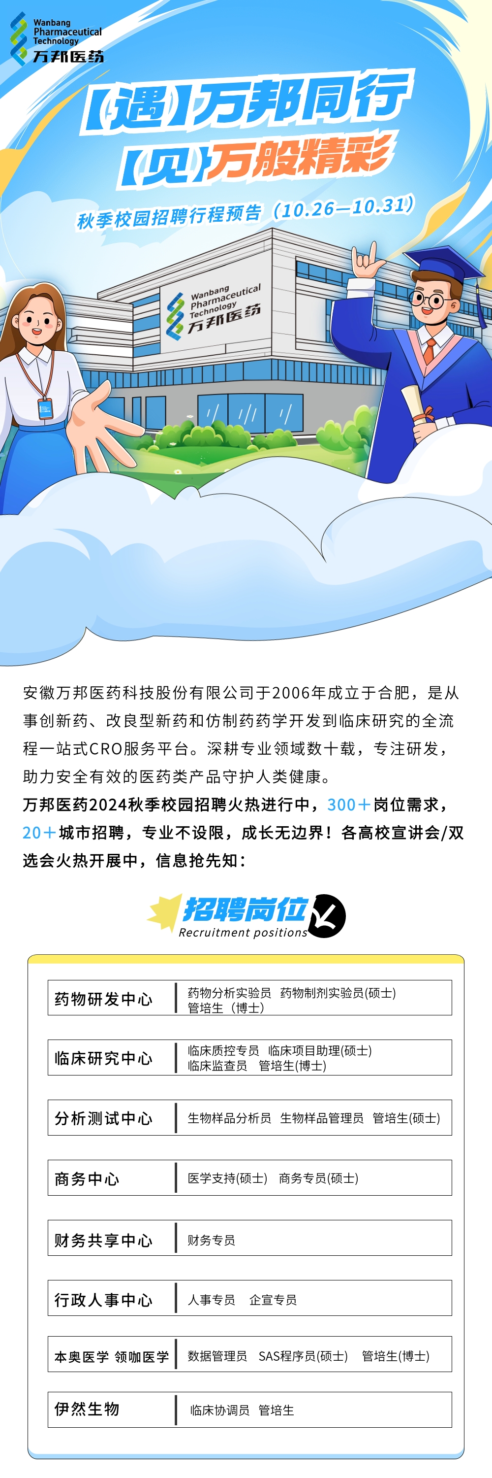 秋季校園招聘行程揭秘|萬邦醫藥「線下宣講會」,邀您相見(10月26日-31日)